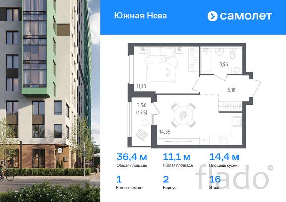 Предлагается 1-комнатная квартира комфорт-класса 36,37 кв.м в корпусе 2 на 16 этаже, в ЖК «Южная Нева»